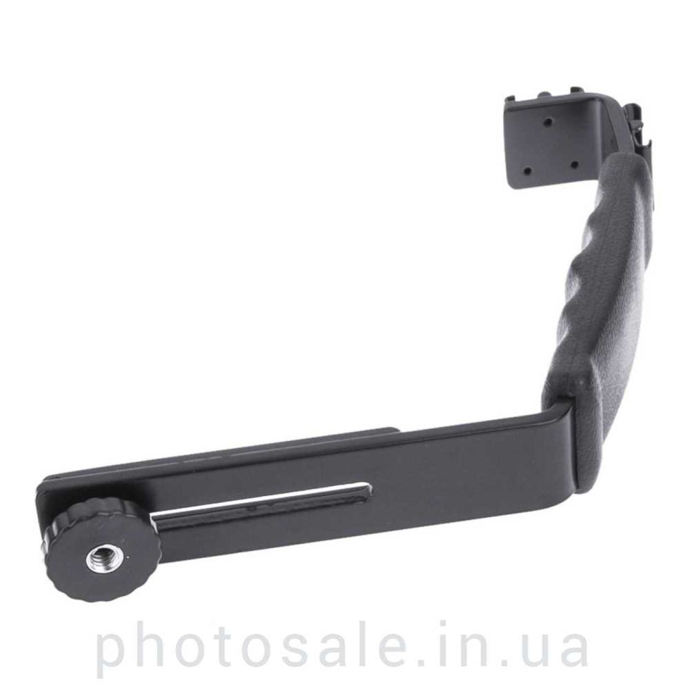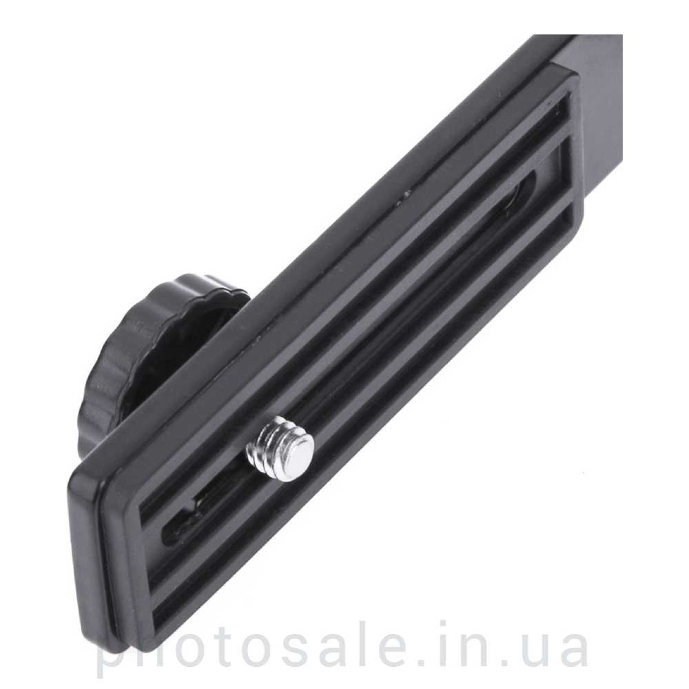 Крепление кронштейна к фотоаппарату происходит через штативное гнездо 1/4 дюйма при помощи зажимной гайки. При этом гайка может двигаться в салазках, что обеспечивает удобство работы с камерами разных габаритов.