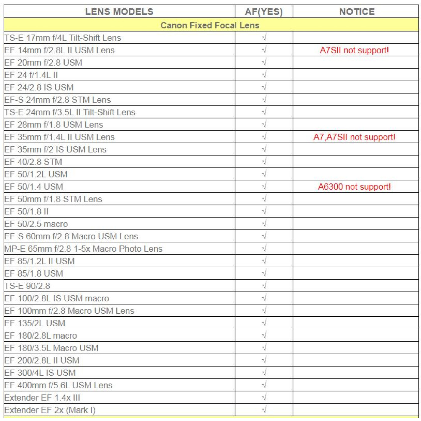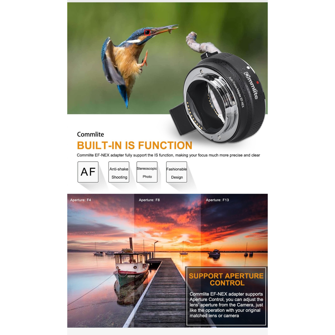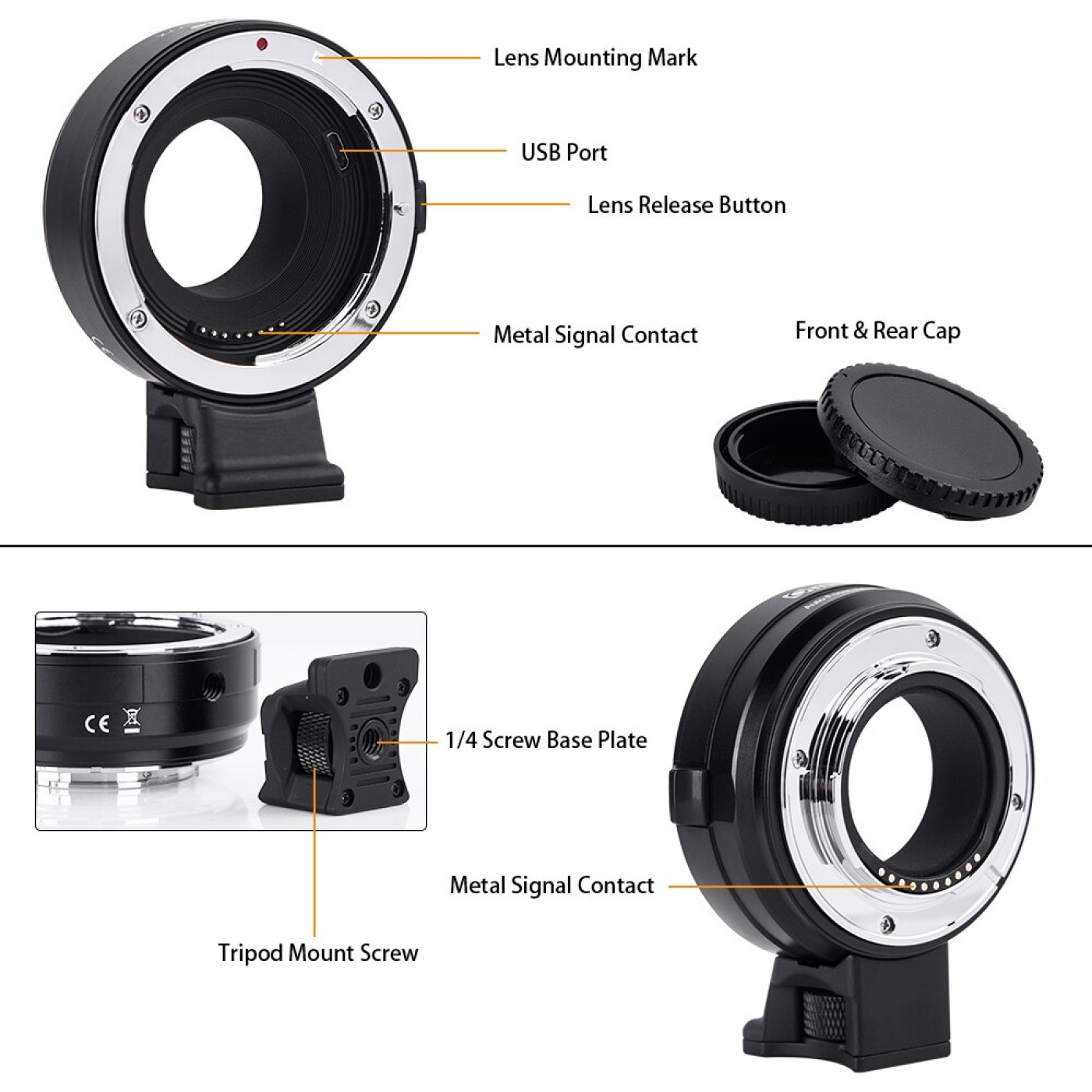 В связи с этим данное переходное кольцо Canon EF – Sony E-mount с электрическими контактами станет очень хорошей альтернативой объективам от фирмы Fujifilm. С использованием данного переходного кольца нет никаких ограничений в использовании оптики Canon: у вас есть возможность использовать все режимы фотокамеры Sony, регулировать диафрагму и пользоваться автофокусировкой.
