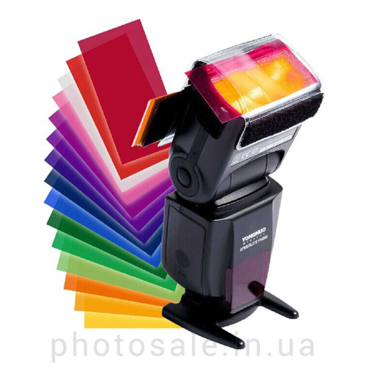 Набор из 12 цветных фильтров для вспышек будет незаменим для фотографов, которые увлекаются стробизмом и часто используют внешнюю вспышку в своих творческих задумках.