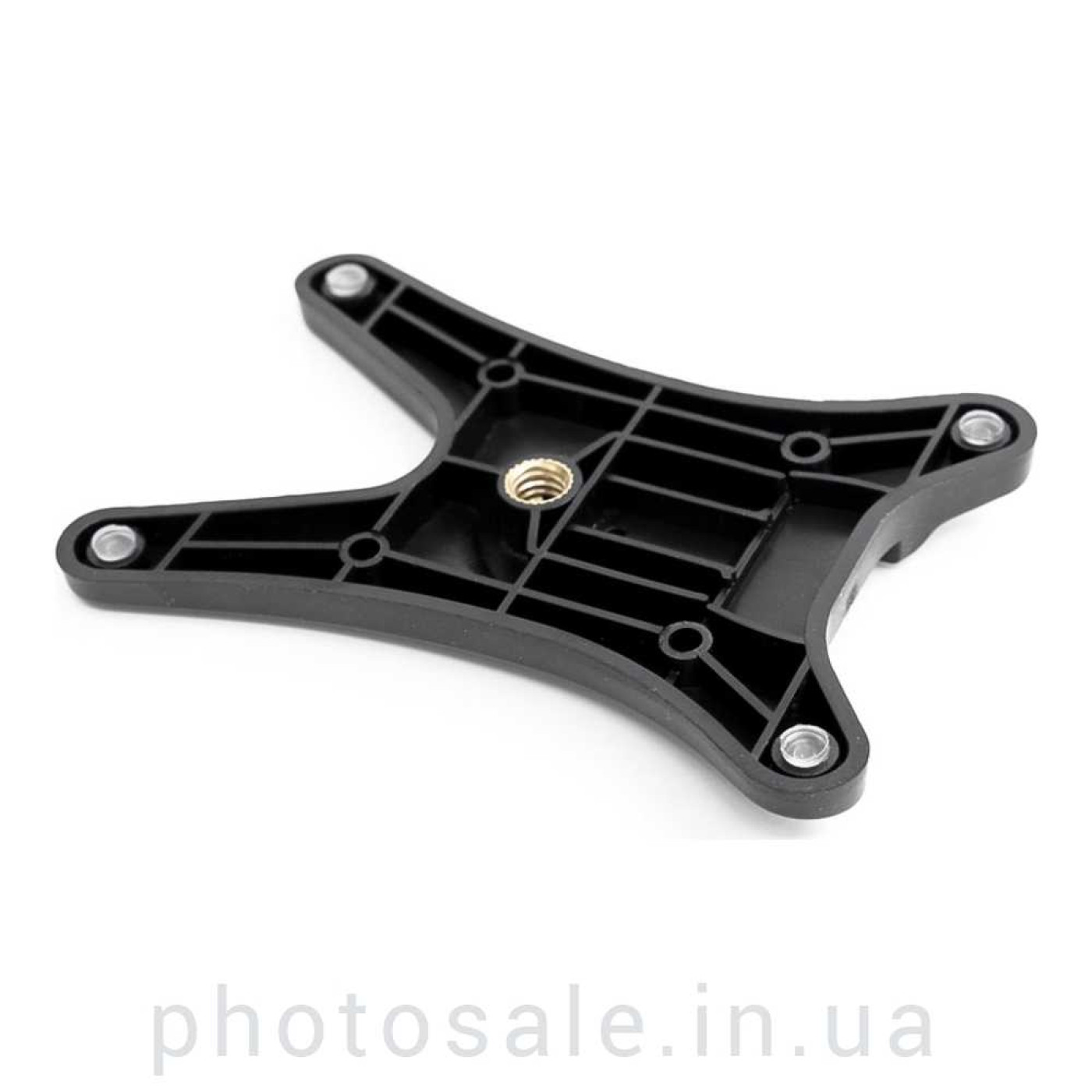 Совместно с данной подставкой вспышка может быть установлена на горизонтальные поверхности и безопасно закрепляться на штативе или стойке. Резьба для установки на стойку или штатив: 1/4". При этом, устанавливая на стойку, пластина выполняет роль некого переходника между самой вспышкой и имеющейся резьбой на стойке.