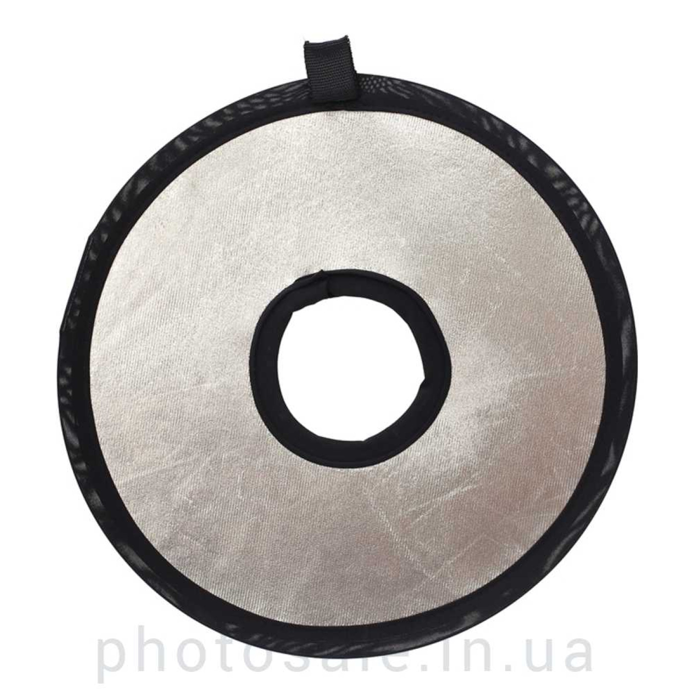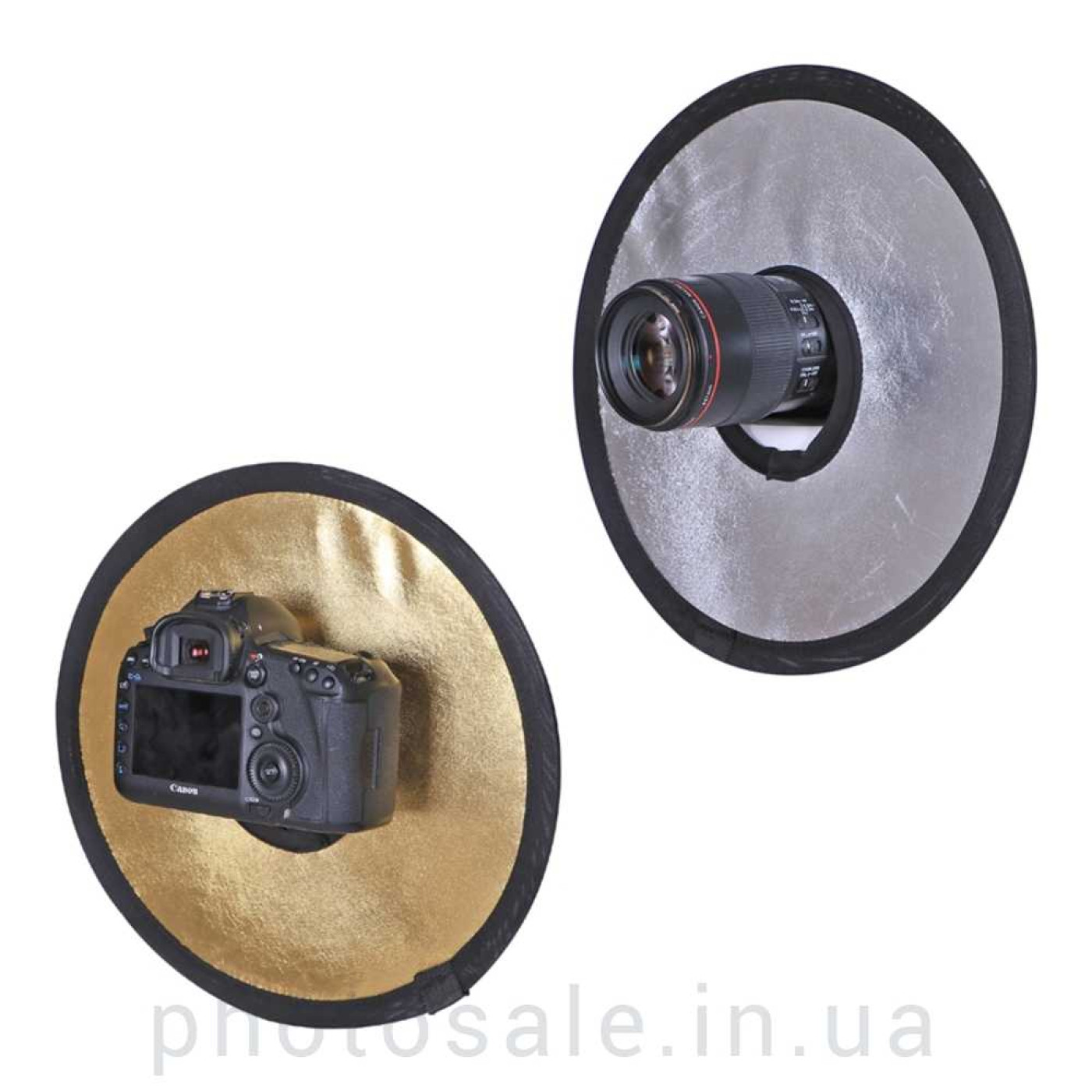 Данный отражатель всего лишь 30 см в диаметре и крепится непосредственно на объектив диаметром до 8 см. Его предназначение – подсветить объект съемки, а учитывая размер в 30 см, эффективность его будет только до метра. Это значит, что его использование идеально при макросъемке и портретной съёмке.