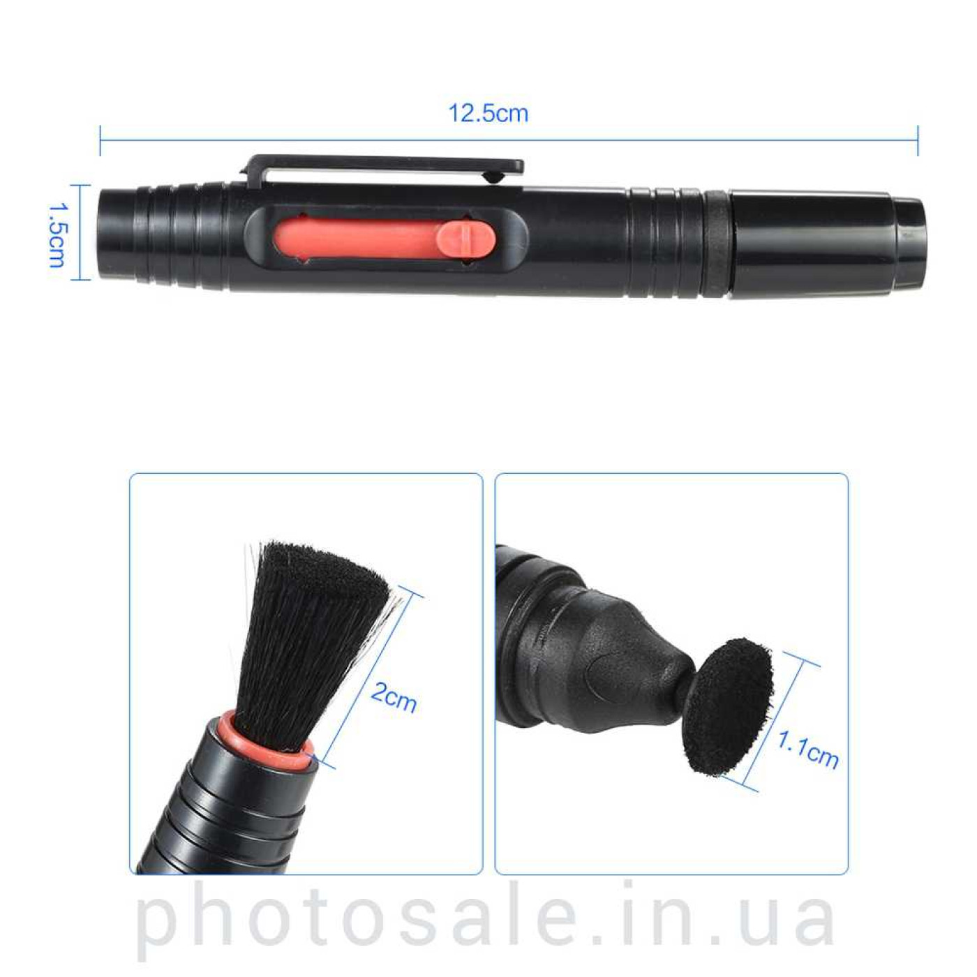 С одной стороны карандаша Lenspen находится выдвигающаяся кисточка из натуральной мягкой щетины, которой можно легко удалить пыль или крупные частицы с объектива. На другом конце – круглый наконечник с чистящим веществом, который эффективно удаляет отпечатки пальцев, жирные пятна или прикипевшие частички пыли.