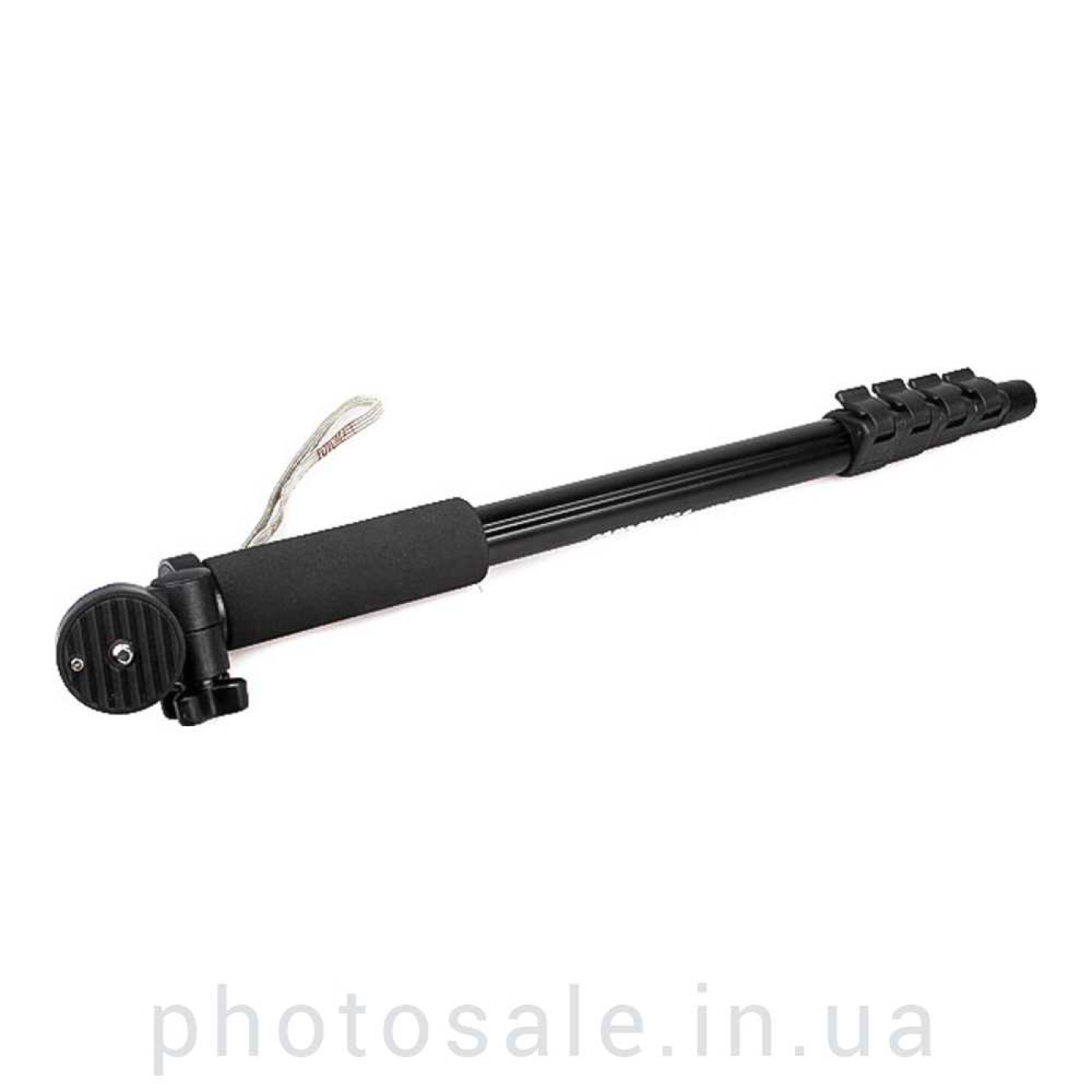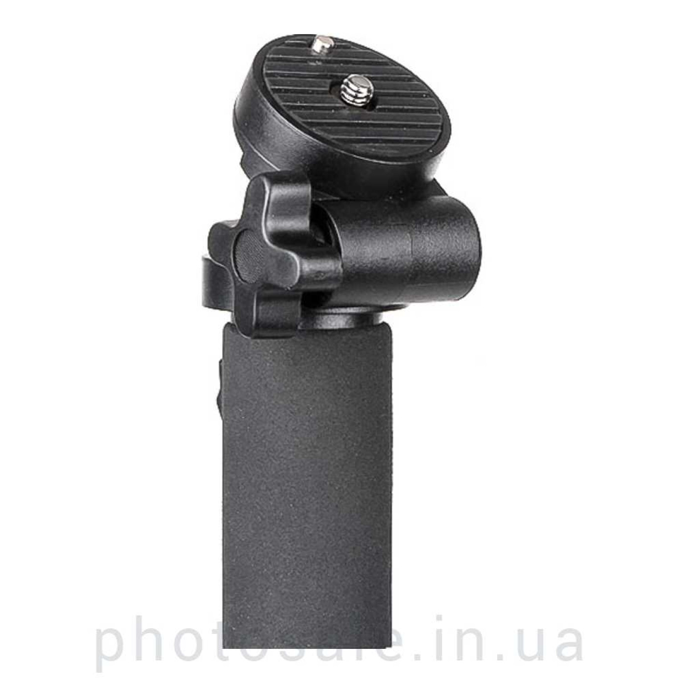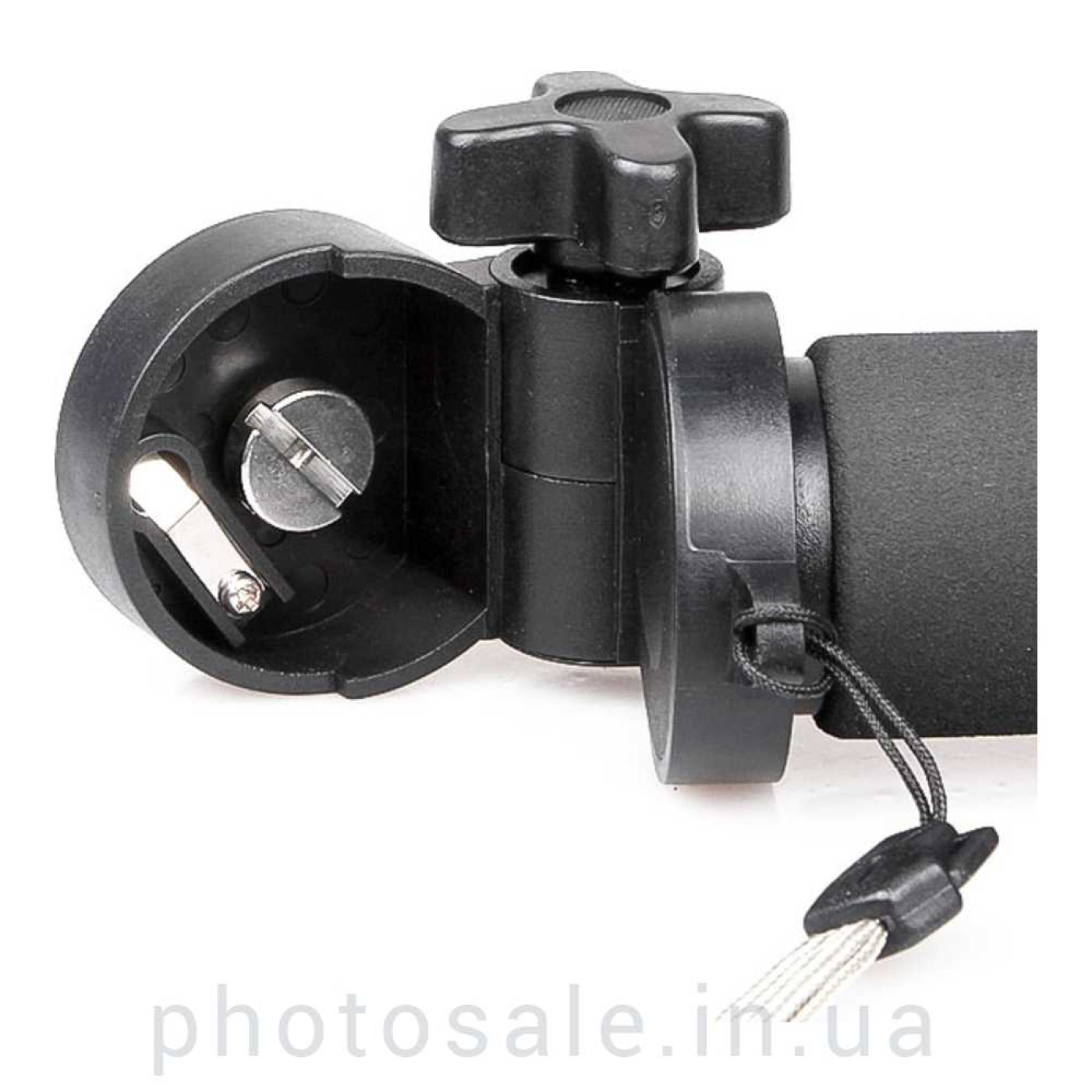 Верхняя часть монопода имеет поворотную головку шарнирного типа из прочного пластика и регулировочный зажимный винт для фиксации положения головы.