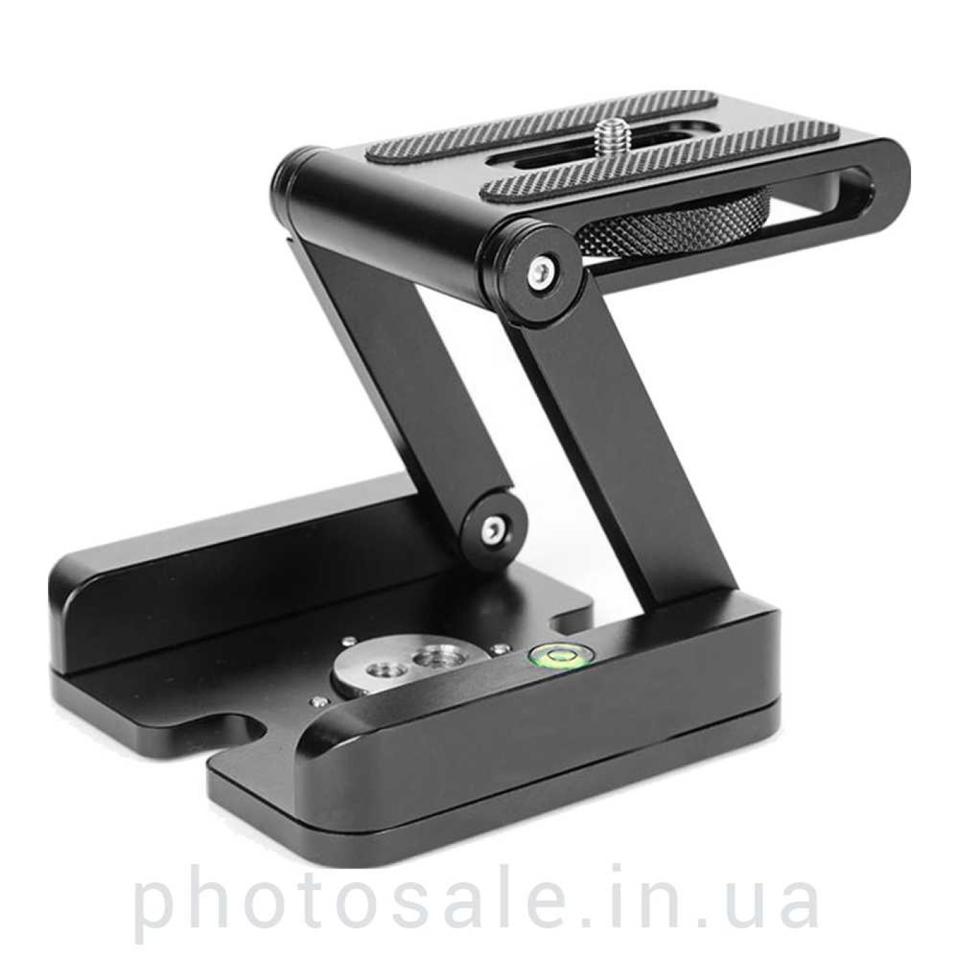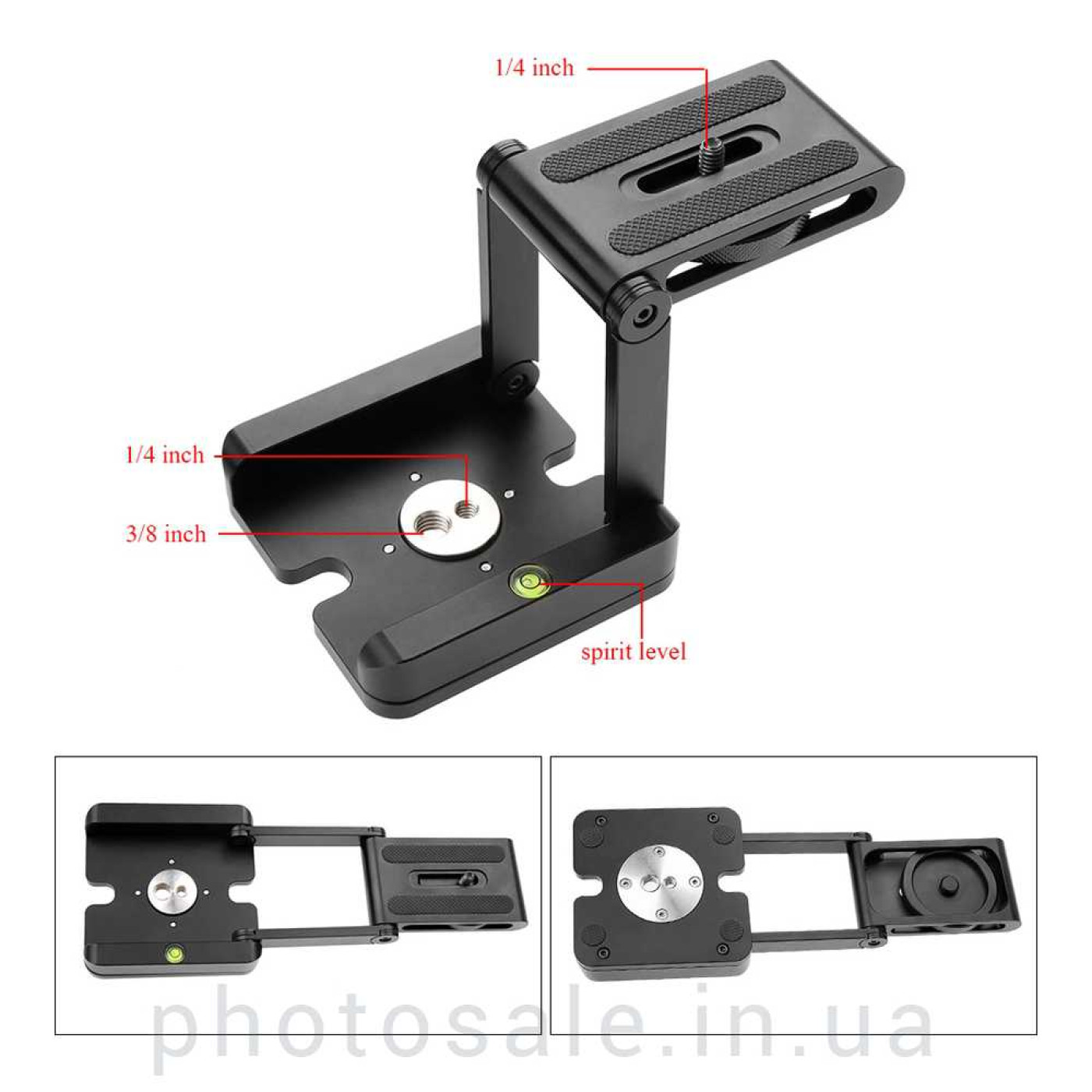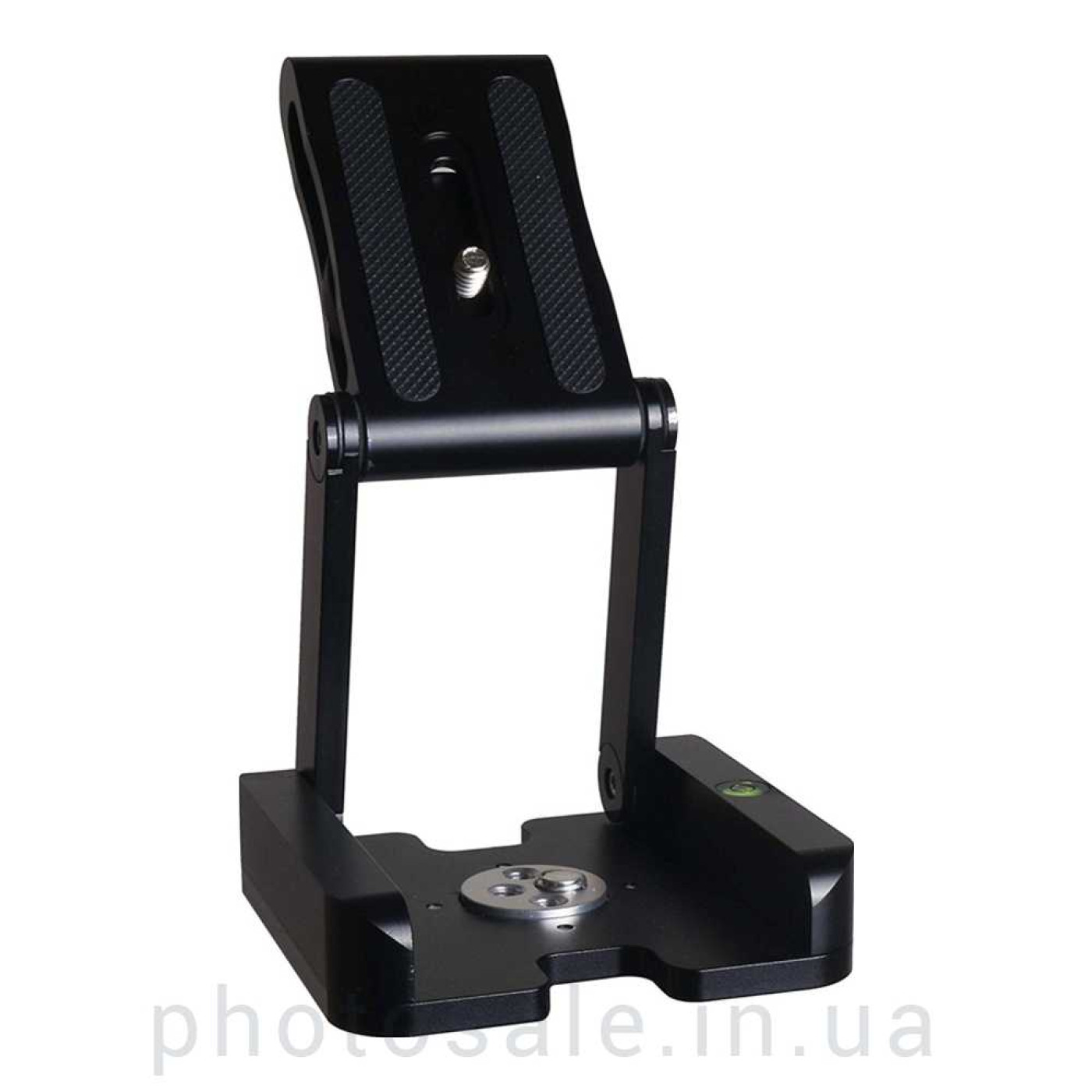 Для закрепления площадки на штатив, стойку служат отверстия 1/4 и 3/8 дюйма. Также для точности установки горизонтального положения площадка имеет водяной уровень. В разложенном состоянии площадка может выдержать до 3 кг веса оборудования.