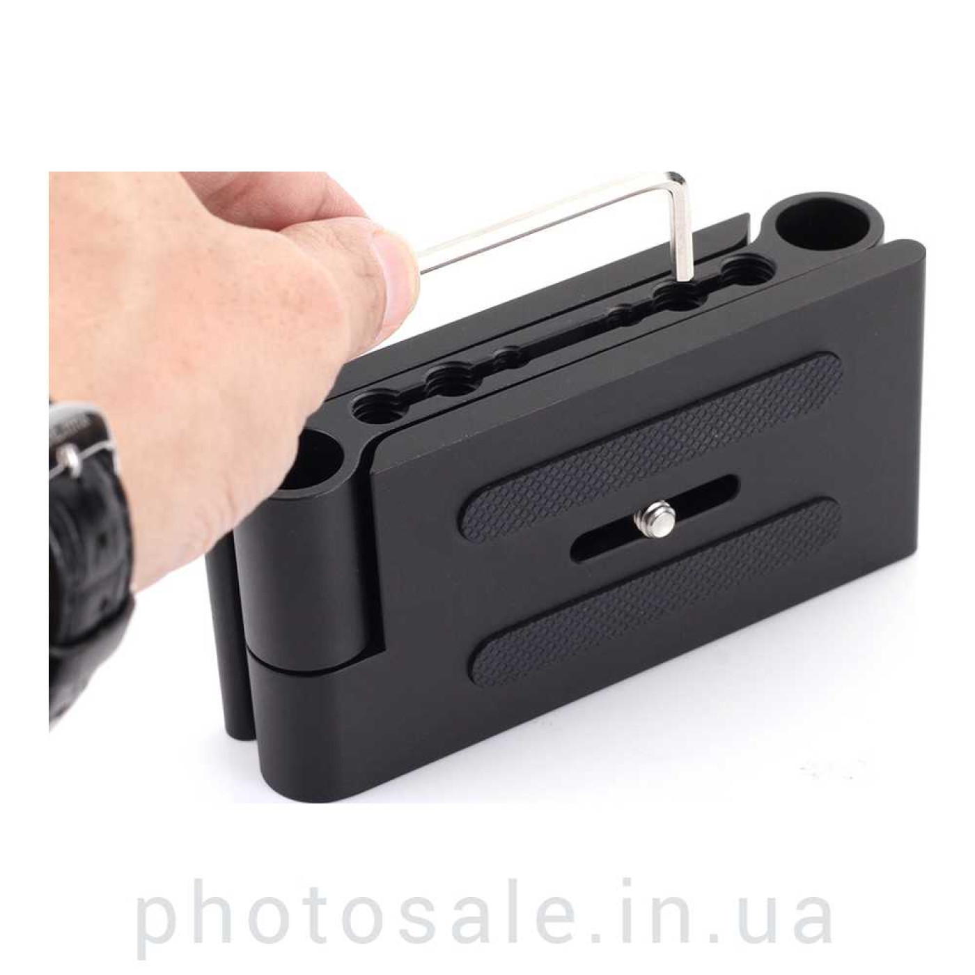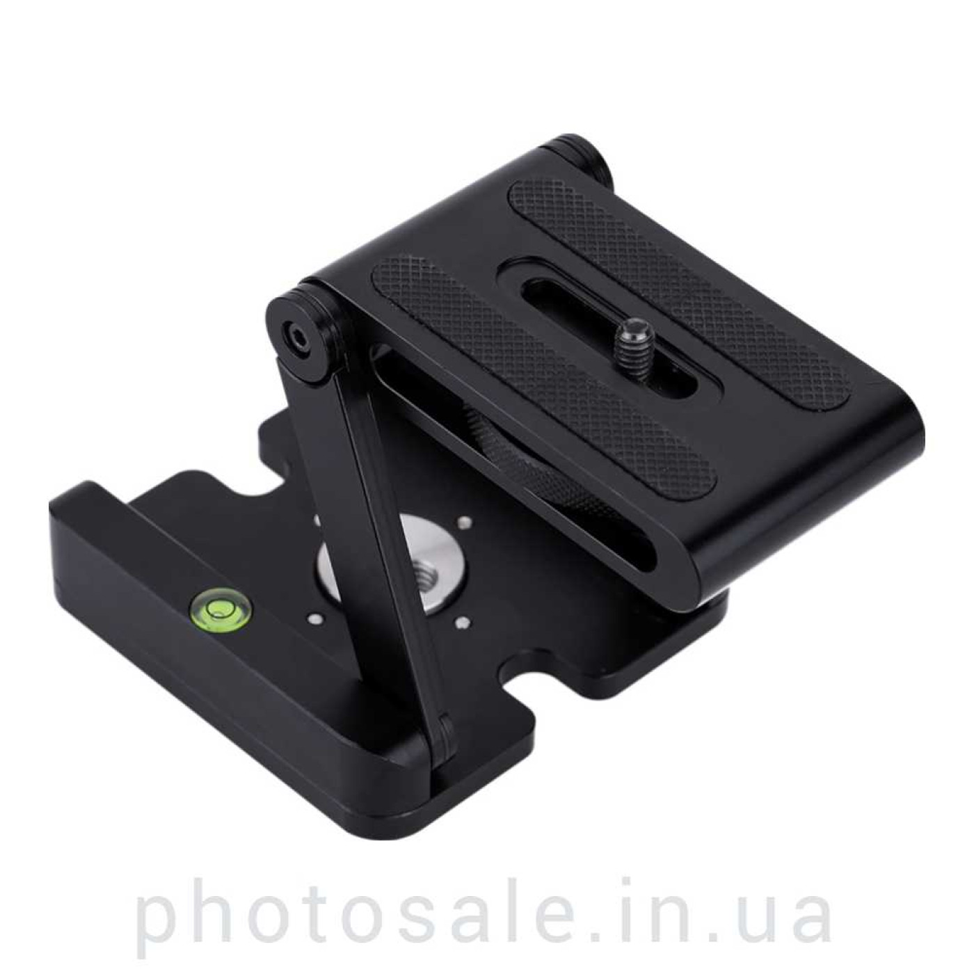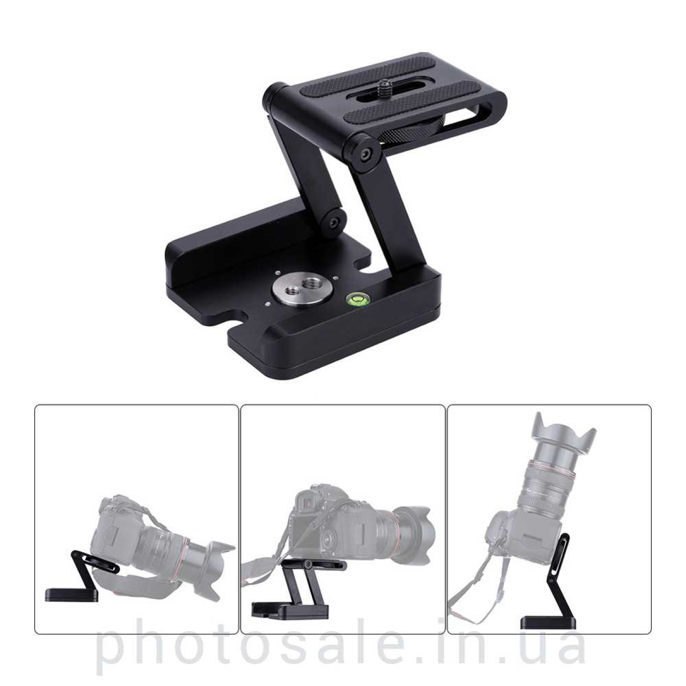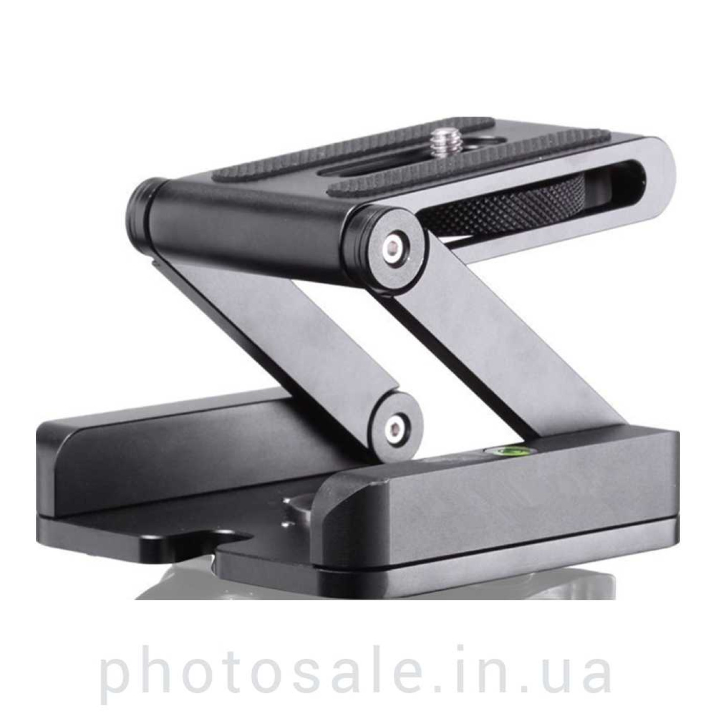 Для закрепления площадки на штатив, стойку служат отверстия 1/4 и 3/8 дюйма. Также для точности установки горизонтального положения площадка имеет водяной уровень. В разложенном состоянии площадка может выдержать до 3 кг веса оборудования.