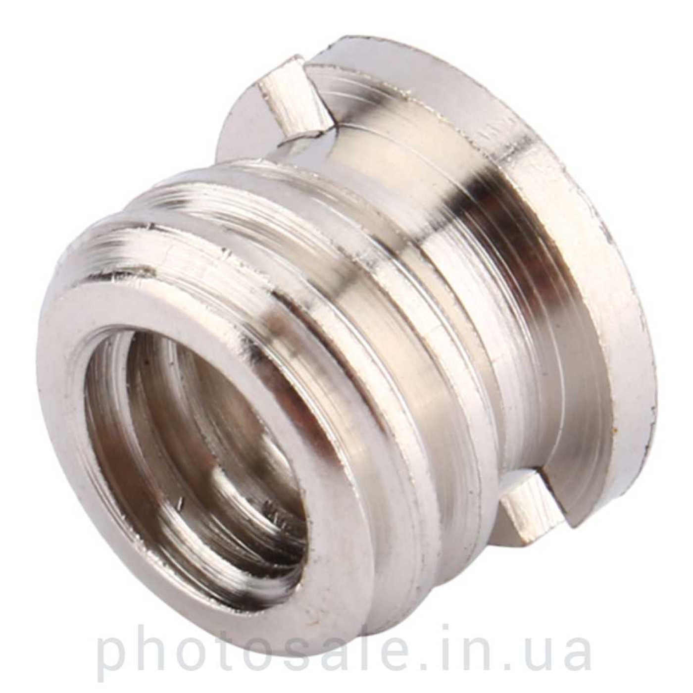 Адаптер выполнен в виде гайки, а для удобства вкручивания отверткой – имеет насечки.