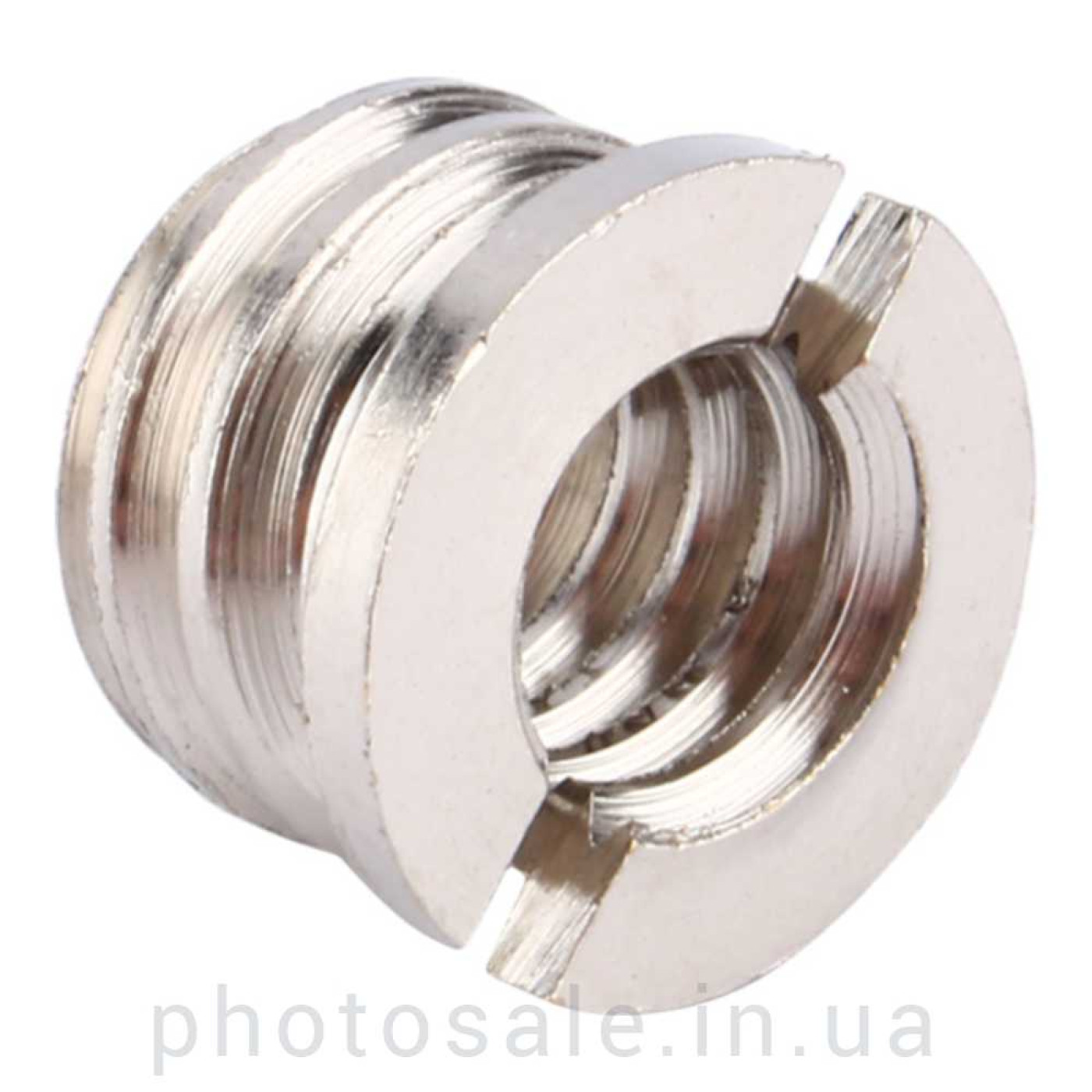 Данный металлический резьбовой переходник служит для увеличения внешней резьбы с 1/4" на 3/8" и наоборот – уменьшения внутренней резьбы с 3/8" на 1/4".