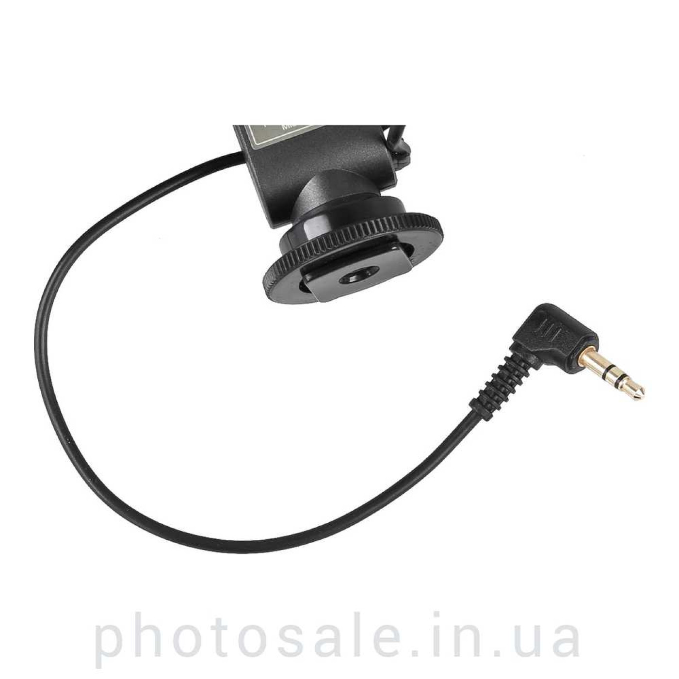 Внешний микрофон SHENGGU SG-108 физически крепится в разъем горячего башмака на фотокамере и подключается в гнездо с помощью 3,5 мм TRS.