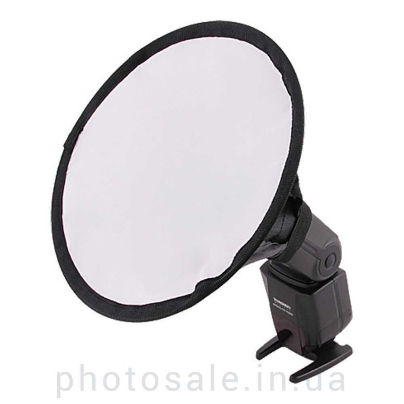 Круглый софтбокс 20 см – это очень нужный фотоаксессуар для репортажной, предметной и других типах съемки, когда вспышка закреплена в горячем башмаке фотоаппарата.