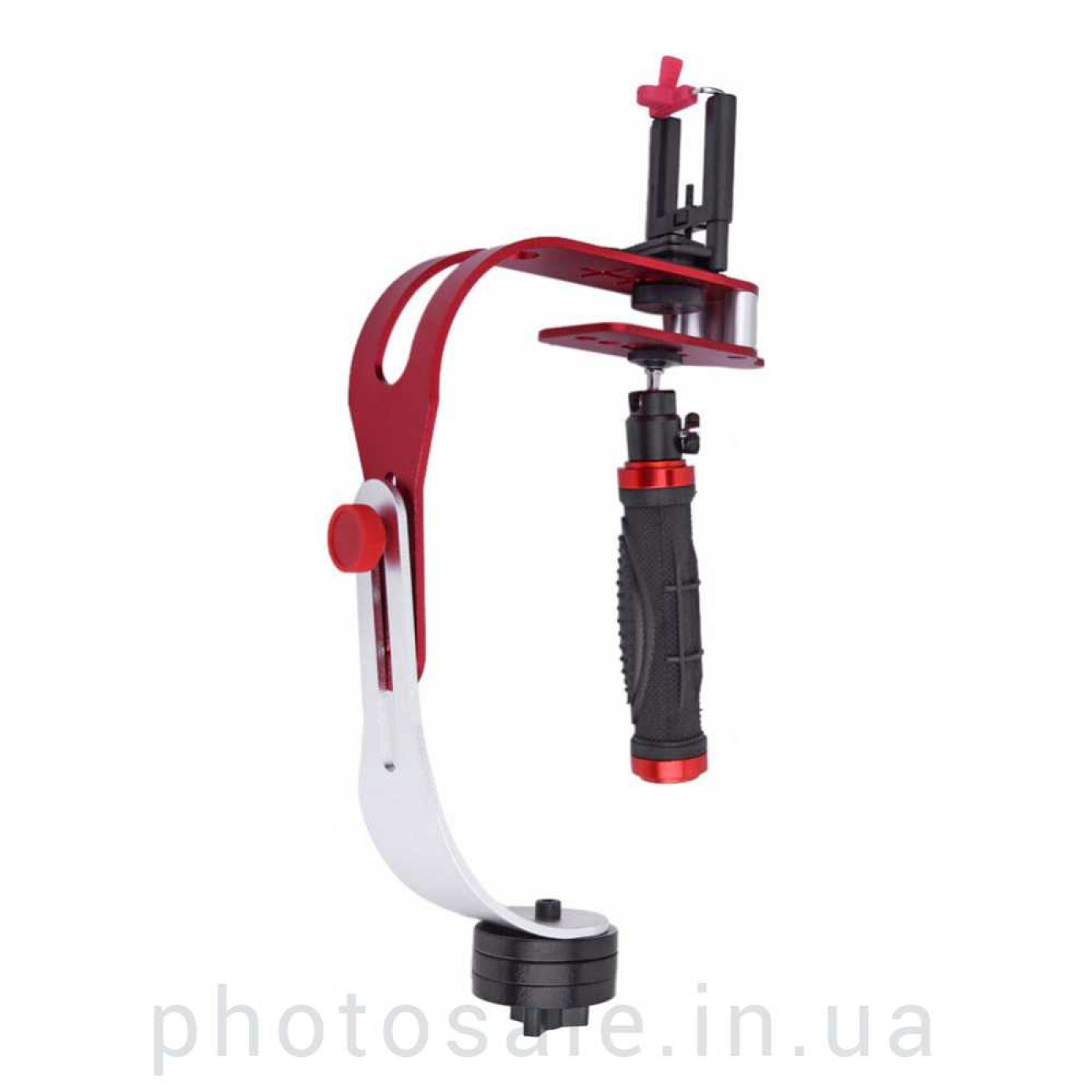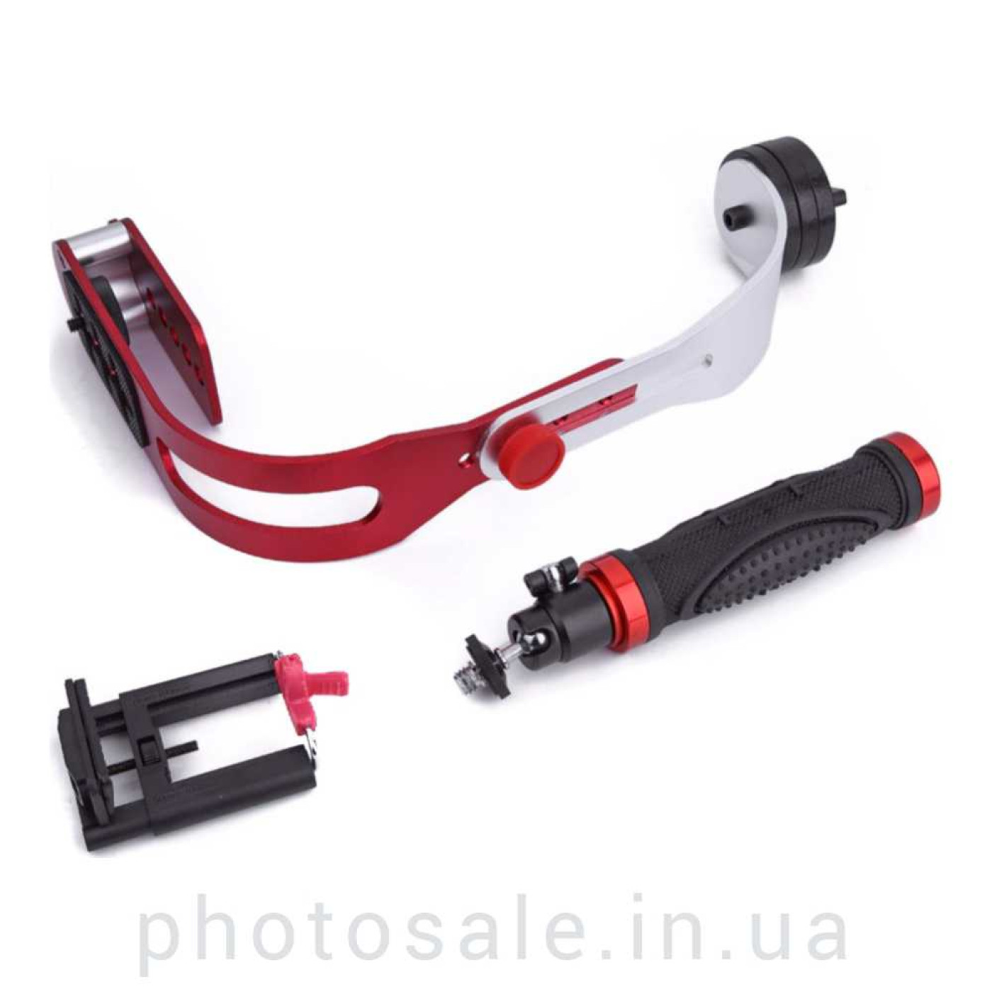 Три основные части, из которых состоит данный стедикам - это площадка для установки камеры, рычаг с грузиками и рукоятка с шарнирной головкой.