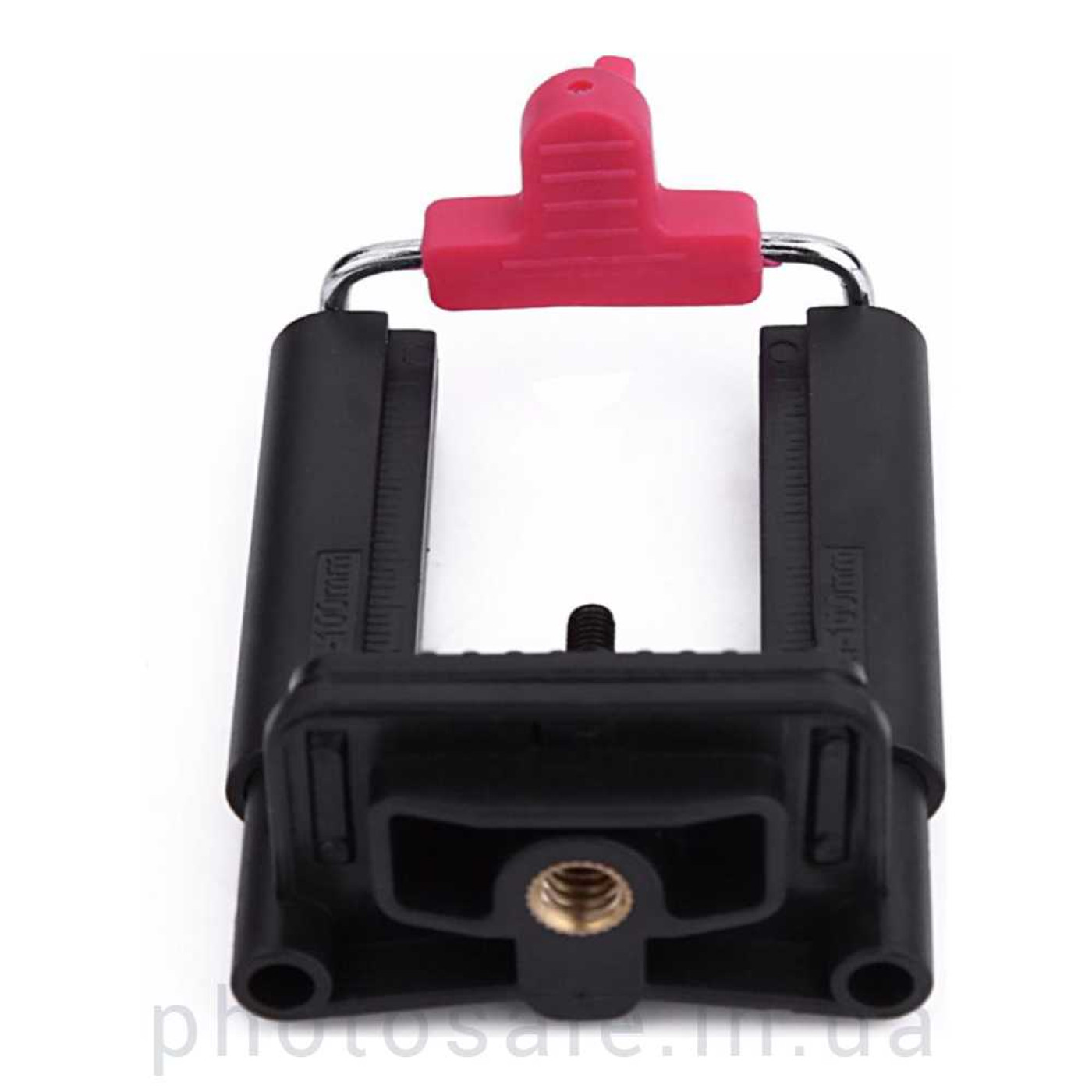 Снизу площадки есть пластина для закрепления ручки. Данная пластина имеет 5 отверстий с резьбой 3/8 дюйма и переходник для резьбы 1/4 дюйма. Переходник можно вкрутить в одно из отверстий и закрепить в нем ручку.