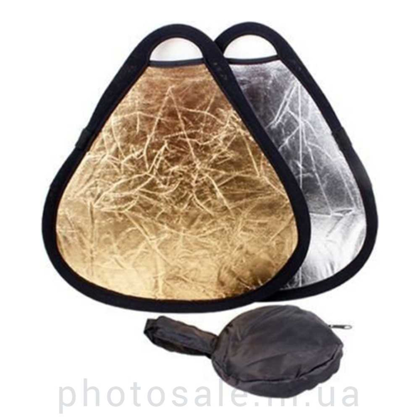 Отражатель, рефлектор 30см поможет, не увеличивая количество источников света, использовать отраженный от солнца свет для смягчения теней на объекте съемки. Особенно это актуально в яркий солнечный день, когда под глазницами модели появляются жесткие тени. Для их смягчения лучше использовать серебристую поверхность данного отражателя, а при закатном солнце – золотистую, дабы не нарушать цветовую температуру снимка. Данный отражатель, рефлектор представляет из себя ни что иное, как ткань, на которую нанесено напыление, которая натянута на гибкий каркас треугольной формы.