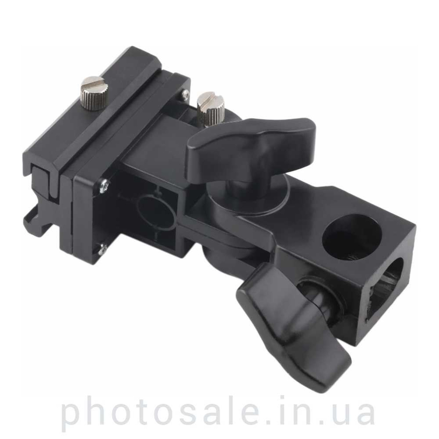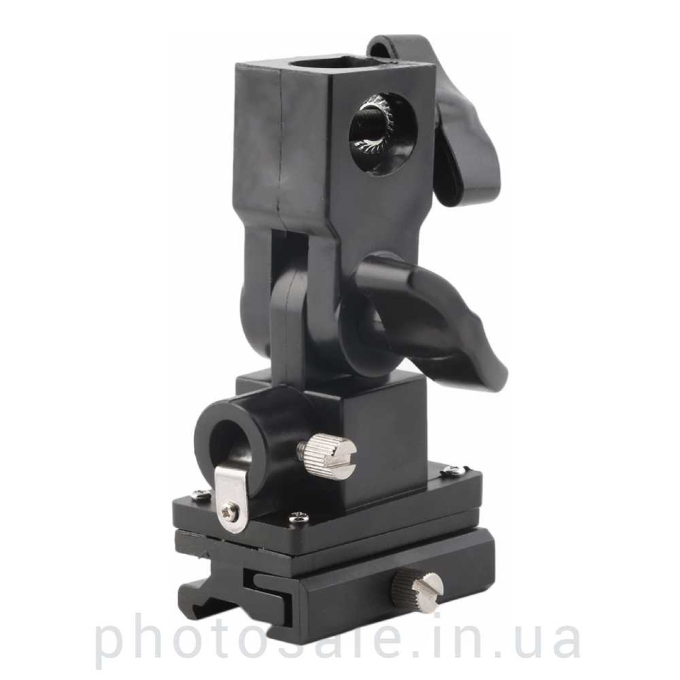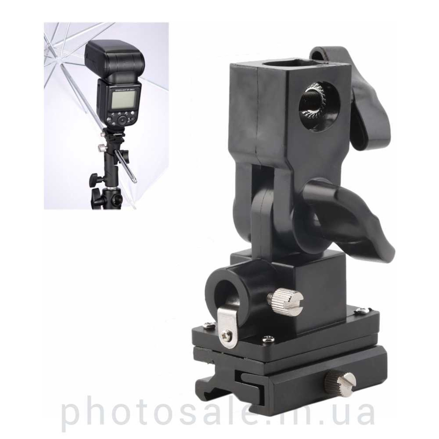 Держатель вспышки и зонта типа В изготовлен из ABS (акрилонитрил-бутадиен-стирол), его зажим неметаллический, чтобы не повредить горячий башмак вспышки.
