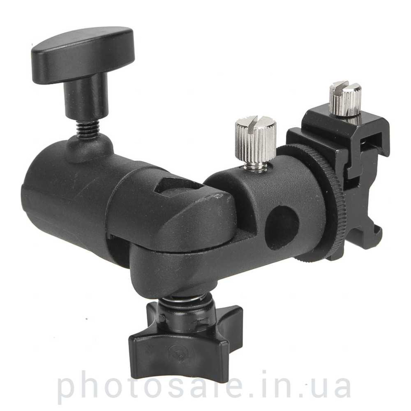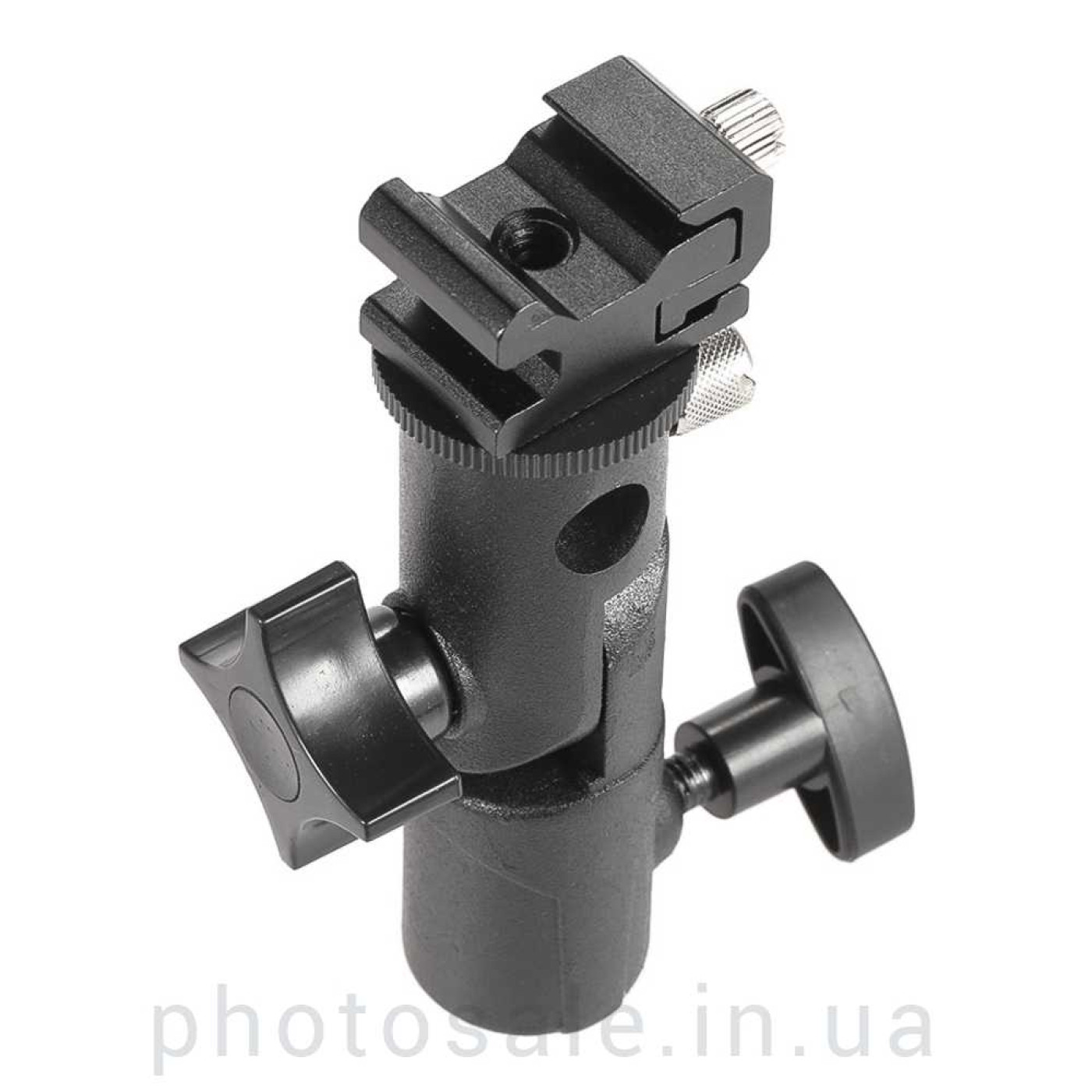 Для крепления накамерной вспышки используется зажимная платформа (диапазон 17-23 мм). Кроме того, зажимная платформа крепится на винт с резьбой 1/4 дюйма, таким образом, Вы можете снять ее и использовать винт для установки синхронизаторов, камер, адаптеров горячего башмака и других приборов, имеющих соответствующую резьбу.