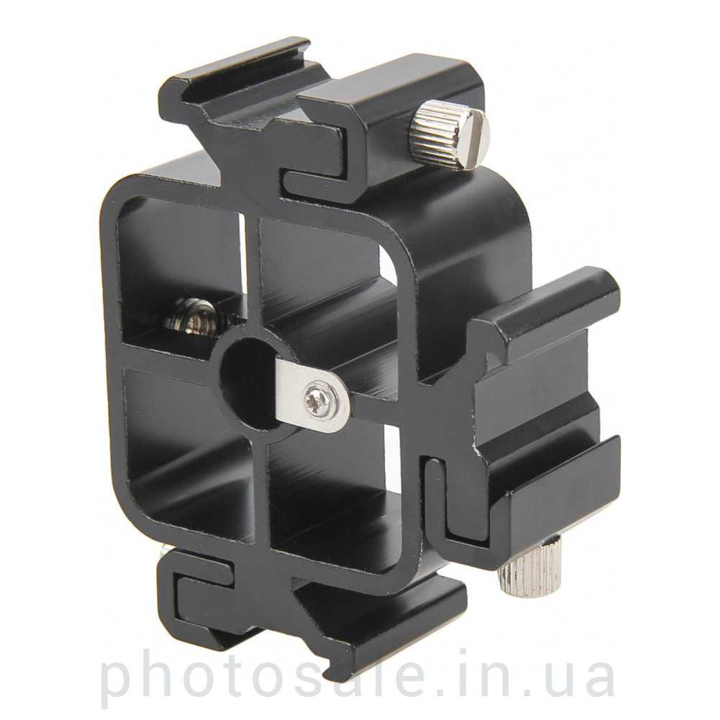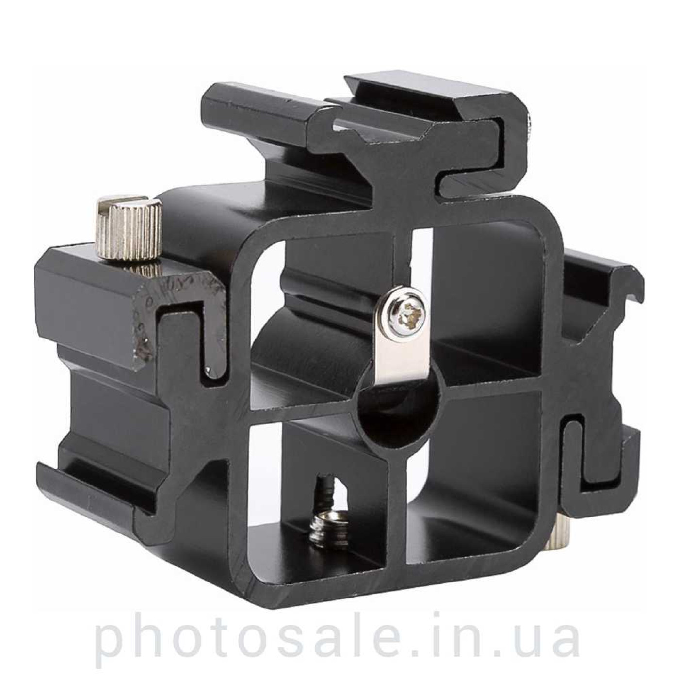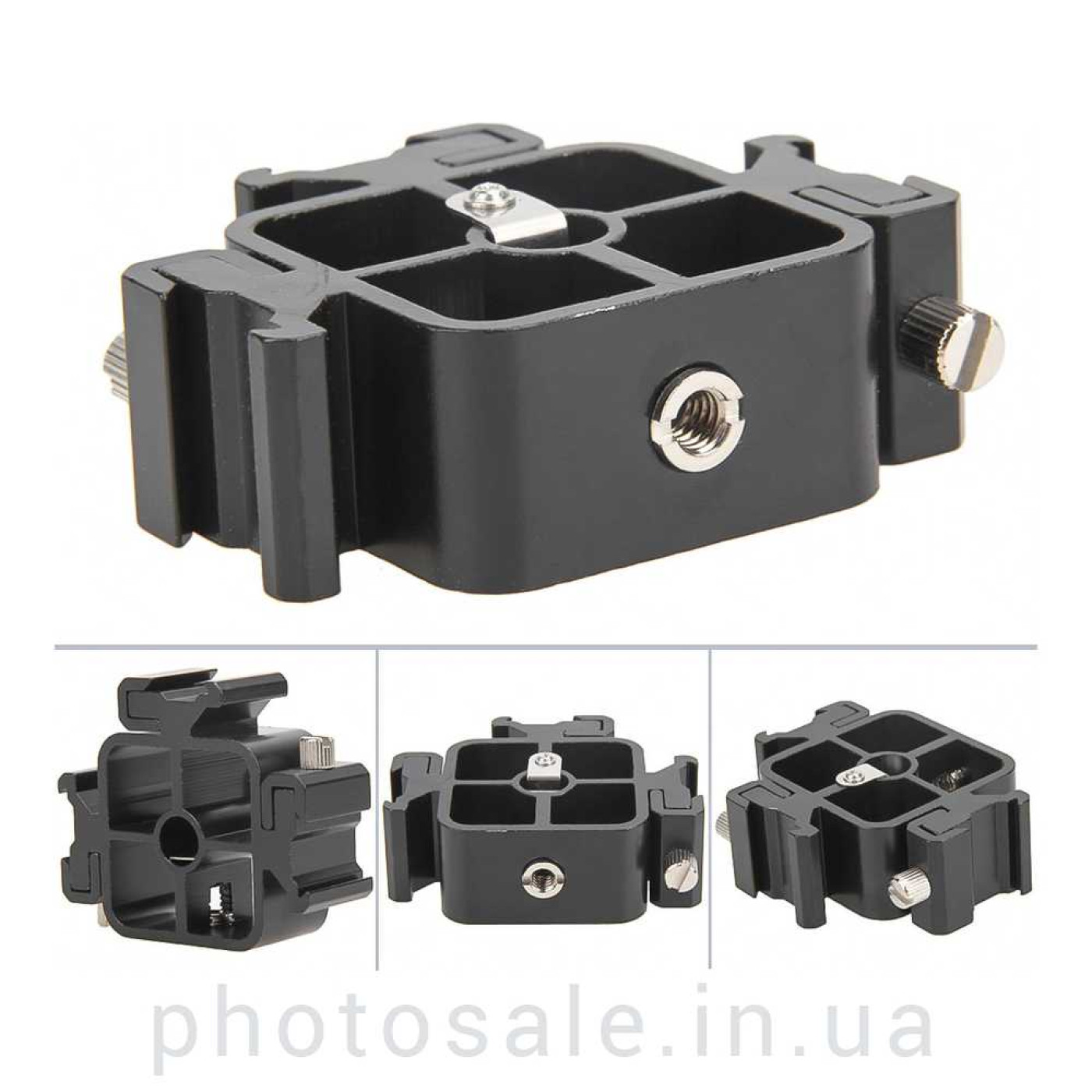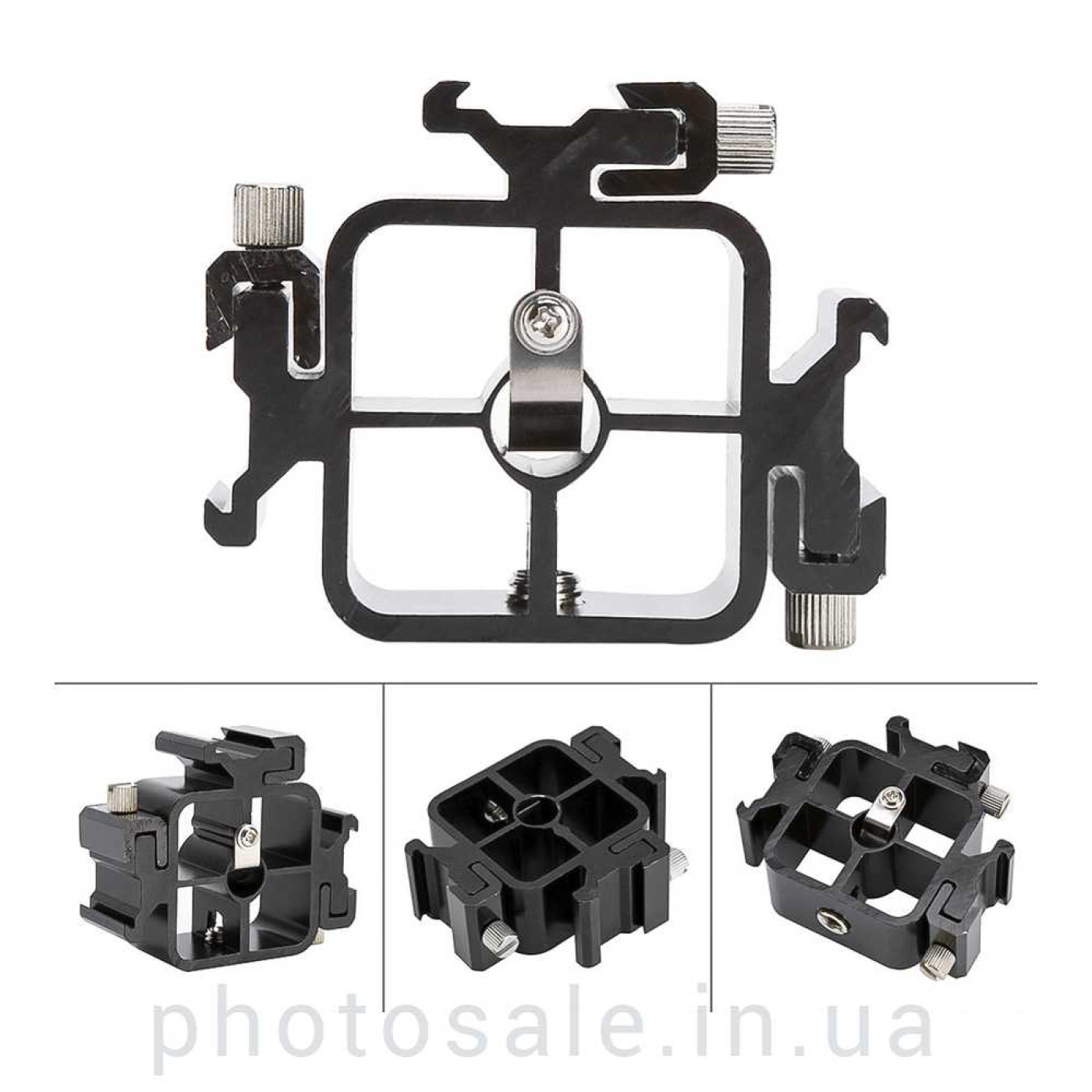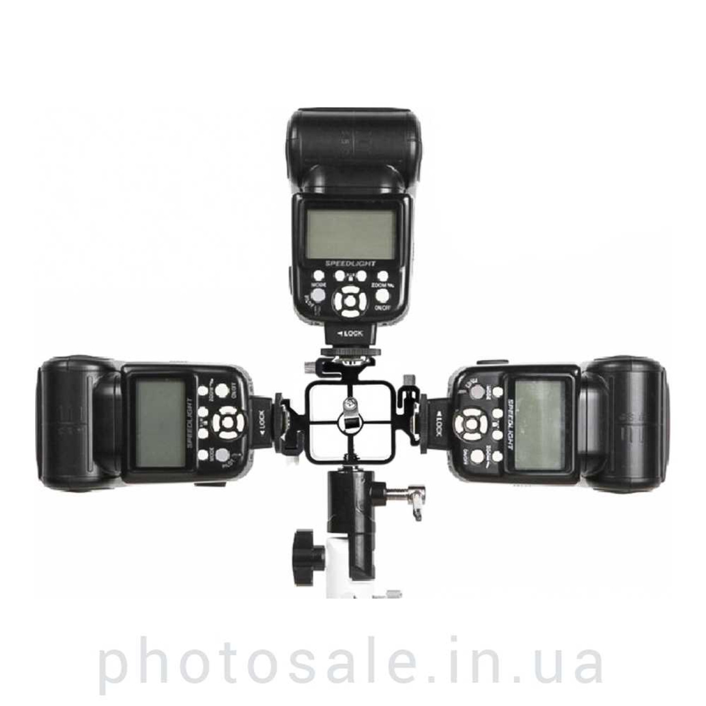 Иногда реализация творческих фотографических постановок требует использования 3 вспышек, расположенных в одной плоскости. В этом случае понадобится данное крепление для трех вспышек и зонта.