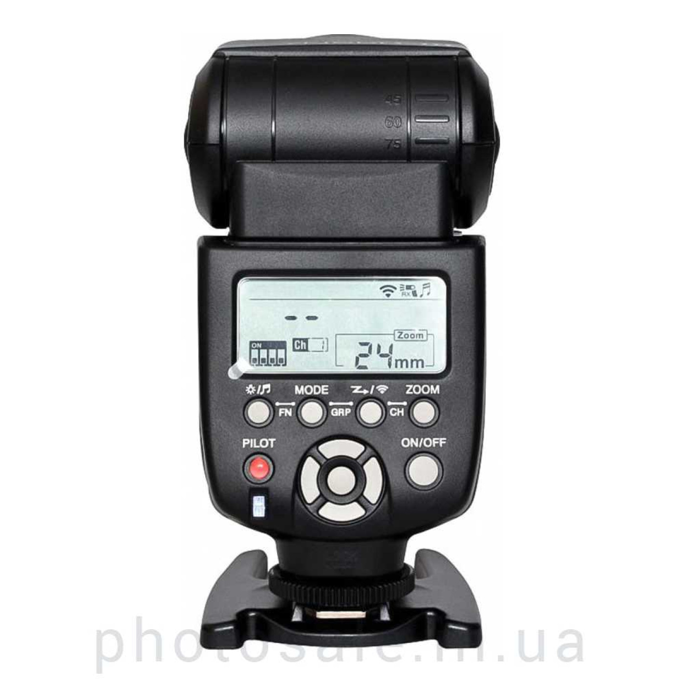 - Возможность зуммирования головки вспышки – 24мм-105мм, что позволяет экономно расходовать энергию аккумулторов